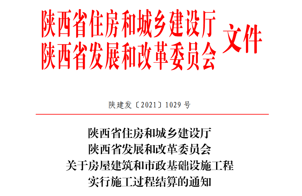 陜西省施工過程結(jié)算2021年4月10日起執(zhí)行