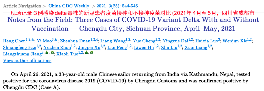 在此次疫情中,中國(guó)疾控中心也評(píng)估了疫苗對(duì)德爾塔毒株的有效性,結(jié)果是:接種疫苗能改善感染者的病情。