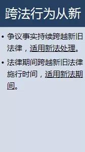 民法典施行前的法律事實(shí)持續(xù)至民法典施行后,該法律事實(shí)引起的民事糾紛案件適用新法。(跨法行為從新原則)