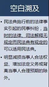 當(dāng)時的法律、司法解釋沒有規(guī)定而民法典有規(guī)定的,可以適用民法典的規(guī)定。(空白溯及原則)