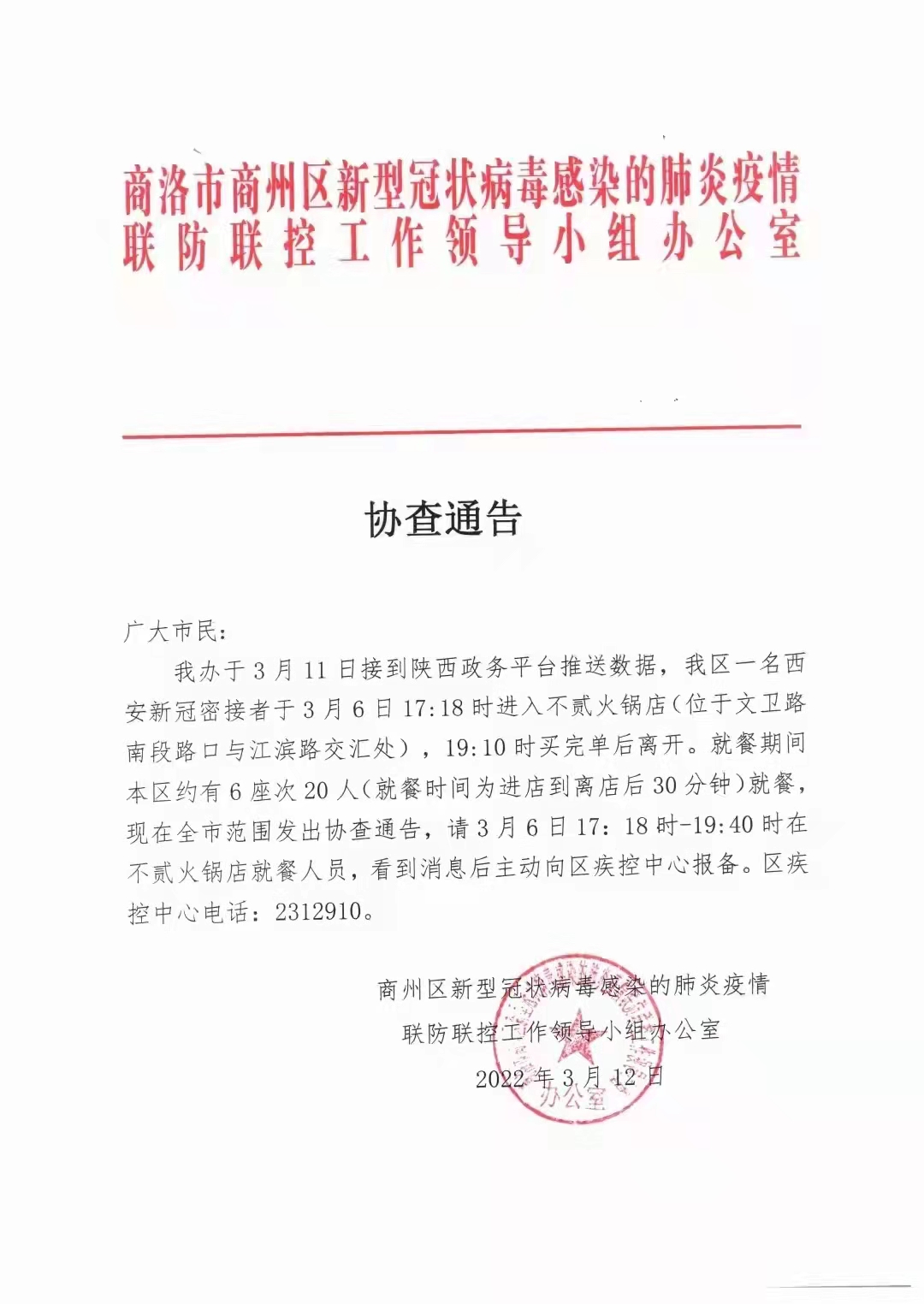 商洛市商州區(qū)新型冠狀病毒感染的肺炎疫情聯(lián)防聯(lián)控工作領(lǐng)導(dǎo)小組辦公室 協(xié)查通告