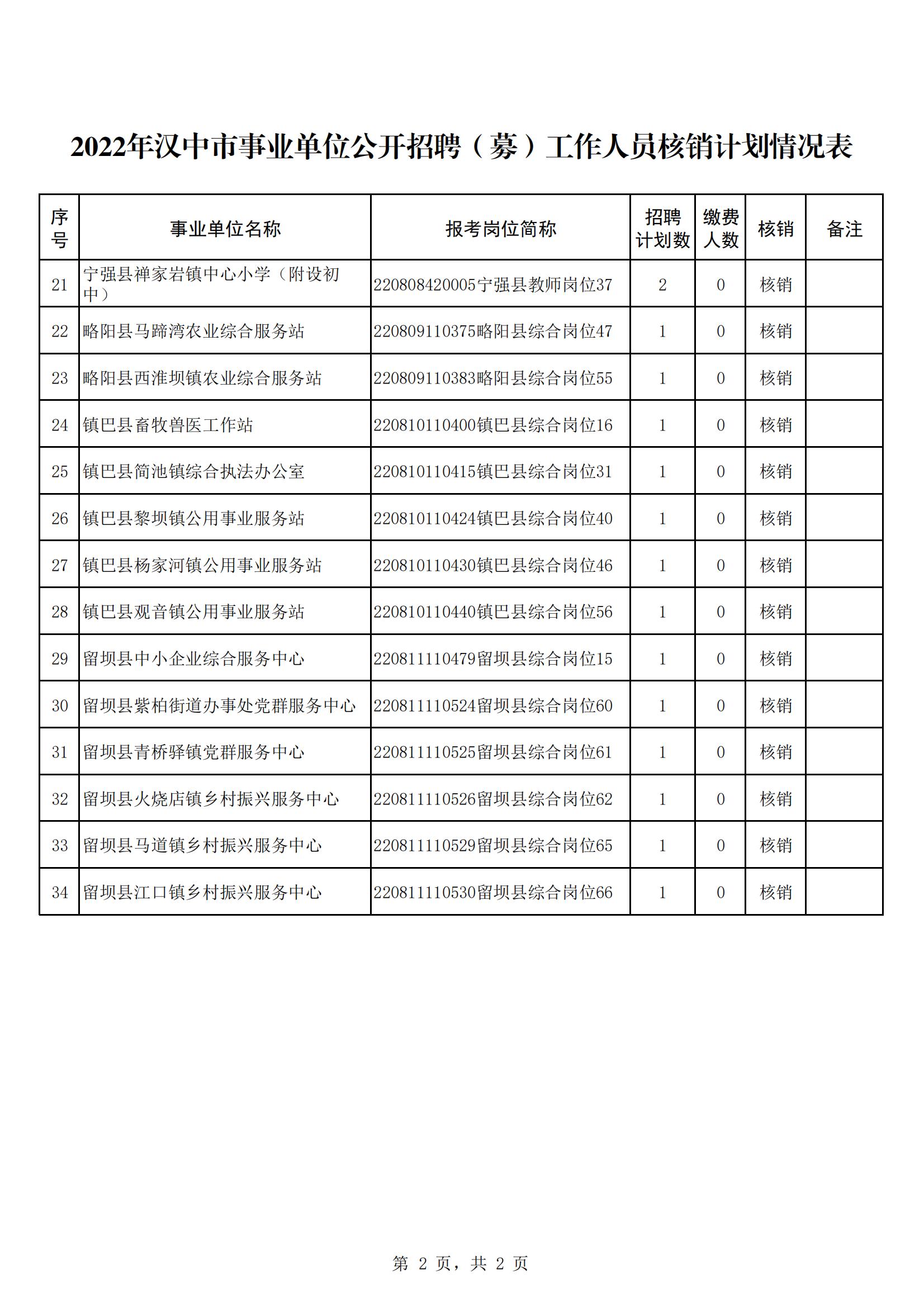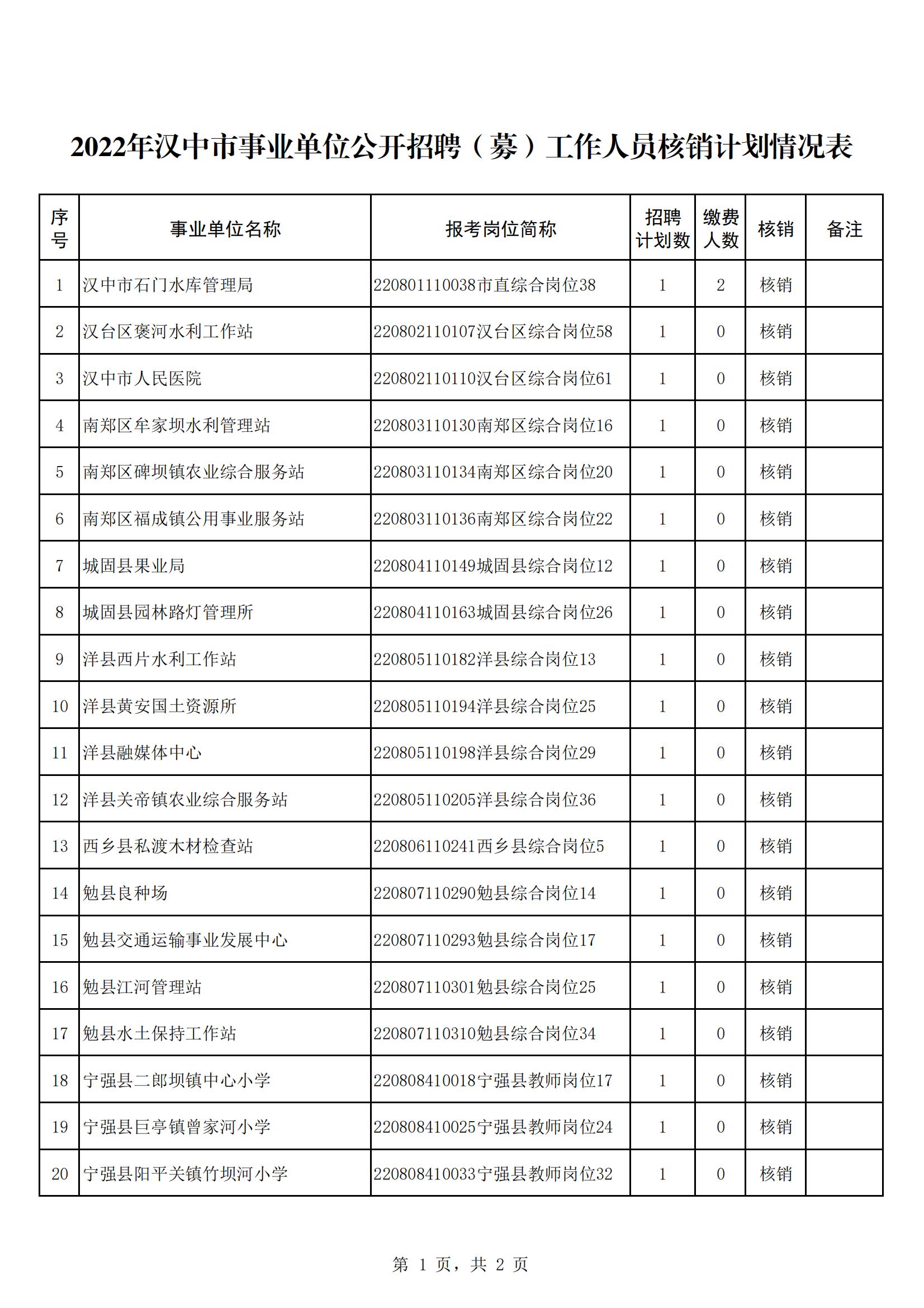 3月24日,漢中市人力資源和社會(huì)保障局發(fā)布2022年漢中市事業(yè)單位公開招聘(募)工作人員核銷計(jì)劃公告,34個(gè)崗位予以核銷不開考。