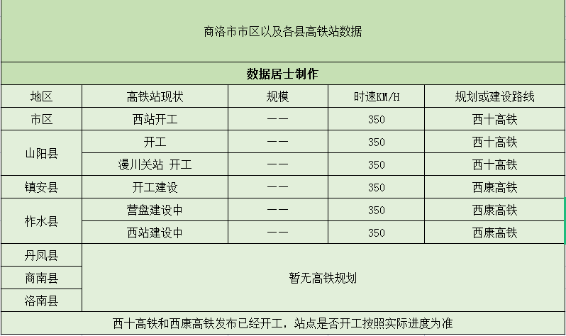 商洛市建設(shè)二條高鐵線(xiàn)路和6個(gè)高鐵站,3個(gè)縣城設(shè)了5個(gè)站點(diǎn)