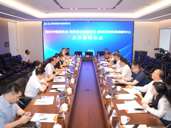 6月25日,西安仲裁委員會、陜西省企業(yè)家協(xié)會、陜西正和商事調(diào)解中心共同簽署法律服務(wù)備忘錄。西安仲裁委員會副主任兼監(jiān)督委員會主任崔景文、陜西省企業(yè)家協(xié)會會長段克明、陜西正和商事調(diào)解中心理事長張萌分別致辭。西安仲裁委員會秘書長王育龍主持會議。西安仲裁委員會西安仲裁院副院長李亞明、陜西省企業(yè)家協(xié)會執(zhí)行秘書長劉會琴、陜西正和商事調(diào)解中心副主任劉英代表三方簽署備忘錄。西安仲裁委員會、陜西省企業(yè)家協(xié)會、陜西正和商事調(diào)解中心相關(guān)負責(zé)人和工作人員,以及部分企業(yè)家代表參會。 會上,崔景文副主任首先介紹了西安仲裁委員會近年來在創(chuàng)新服務(wù)模式、深化機制改革、打造專業(yè)團隊、拓展國際布局等方面取得的突破進展,他表示,希望三方以此次法律服務(wù)備忘錄的簽署為契機,進一步加強溝通協(xié)作,打造出具有陜西特色的商事糾紛解決品牌,為全省民營經(jīng)濟高質(zhì)量發(fā)展注入新動能。 段克明會長指出,此次三方攜手建立“先行調(diào)解,仲裁保障”的糾紛解決創(chuàng)新機制,將為市場主體提供更高效、更便捷、更專業(yè)的法律服務(wù)。他表示,陜西企協(xié)將強化宣傳推廣、優(yōu)化服務(wù)流程、深化協(xié)同機制,更好地服務(wù)陜西經(jīng)濟社會發(fā)展。 張萌理事長介紹了陜西正和商事調(diào)解中心的相關(guān)情況,并表示希望通過調(diào)解、仲裁、行業(yè)協(xié)同的模式,把看得見、摸得著的服務(wù)精準地送到企業(yè)身邊,助力營造市場化、法治化、國際化一流營商環(huán)境。 三方均表示,期待此次合作結(jié)出豐碩成果,惠及廣大陜西企業(yè),為我省提升社會治理效能、維護經(jīng)濟秩序穩(wěn)定、促進社會公平正義貢獻力量。