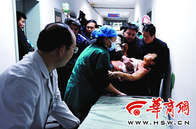 方武被送往醫(yī)院搶救本報記者李杰攝