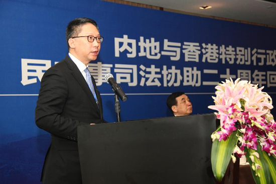 沈德詠常務(wù)副院長指出,香港回歸以來,最高人民法院與香港特區(qū)律政司在“一國兩制”方針指引下,先后簽署了四項(xiàng)民商事司法協(xié)助安排,成果顯著。他強(qiáng)調(diào),在新的歷史時期,兩地應(yīng)不忘初心,繼續(xù)擴(kuò)大合作共識,砥礪前行,不斷提升合作水平,堅(jiān)定信心,共創(chuàng)兩地司法協(xié)助新局面。
